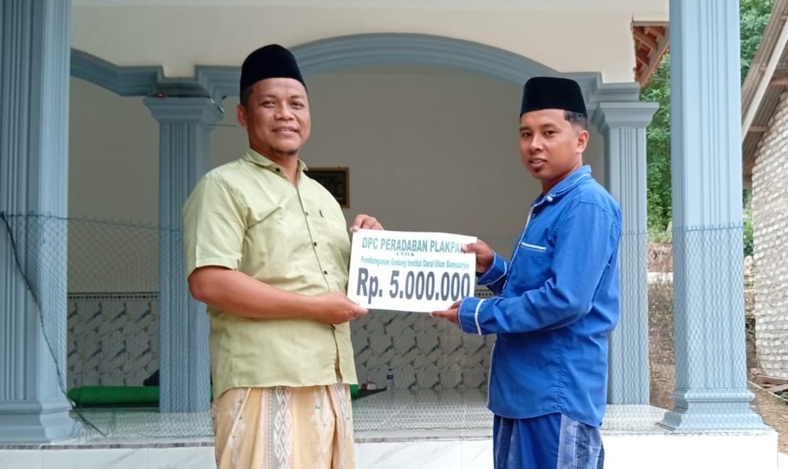 Pegantenan – Ahad, 26 April 2026, Dewan Pimpinan Cabang (DPC) Persatuan Alumni Darul Ulum Banyuanyar (PERADABAN) Desa Plakpak, Kecamatan Pegantenan, Kabupaten Pamekasan, menyerahkan donasi pembangunan Gedung Institut Darul Ulum Banyuanyar (IDB) Pamekasan sebesar Rp5.000.000. Penyerahan dilakukan secara simbolis kepada pengurus Dewan Pimpinan Wilayah (DPW) PERADABAN Pegantenan di Dusun Tacempah, Desa Plakpak. Donasi tersebut merupakan kontribusi para alumni Lembaga Pendidikan Islam Darul Ulum Pondok Pesantren Banyuanyar yang berada di Desa Plakpak, sebagai bentuk nyata dukungan terhadap pengembangan lembaga pendidikan di lingkungan pesantren. Penyerahan bantuan dilakukan langsung oleh Wakil Ketua DPC PERADABAN Desa Plakpak, Moh. Ali Wafa. Kegiatan ini sekaligus menjadi bagian dari komitmen alumni dalam menjaga hubungan emosional dan kontribusi berkelanjutan kepada almamater tercinta. Ketua DPC PERADABAN Plakpak, Moh. Hosni, menyampaikan bahwa donasi tersebut merupakan kali kedua yang diserahkan. Ia menjelaskan, mekanisme penyaluran kali ini dilakukan melalui DPW PERADABAN Pegantenan agar dapat dikelola secara terkoordinasi dengan DPC yang lain. “Donasi ini merupakan yang kedua kalinya dari PERADABAN Plakpak. Jika sebelumnya diserahkan langsung ke pesantren, kali ini kami salurkan melalui DPW PERADABAN Pegantenan agar dapat dihimpun bersama donasi lainnya. Bagi kami, yang terpenting adalah keberlanjutan khidmat alumni sebagai bentuk pengabdian kepada pesantren dan para guru,” ujarnya. Sementara itu, pengurus DPW PERADABAN Pegantenan Koordinator Bidang Keorganisasian, Fathor Rofiq, menyampaikan apresiasi dan terima kasih atas kontribusi yang diberikan oleh DPC PERADABAN Plakpak beserta seluruh alumni. “Kami mengucapkan terima kasih kepada seluruh pengurus DPC PERADABAN Plakpak dan alumni Darul Ulum Banyuanyar di Desa Plakpak atas dukungan dana pembangunan Gedung IDB. Ini merupakan wujud tanggung jawab moral dan sosial alumni dalam mendukung pengembangan pendidikan di Pondok Pesantren Banyuanyar,” ungkapnya. Ia menambahkan, kontribusi tersebut menjadi bukti nyata kepedulian alumni dalam memperkuat eksistensi dan kemajuan lembaga pendidikan pesantren di masa mendatang.
